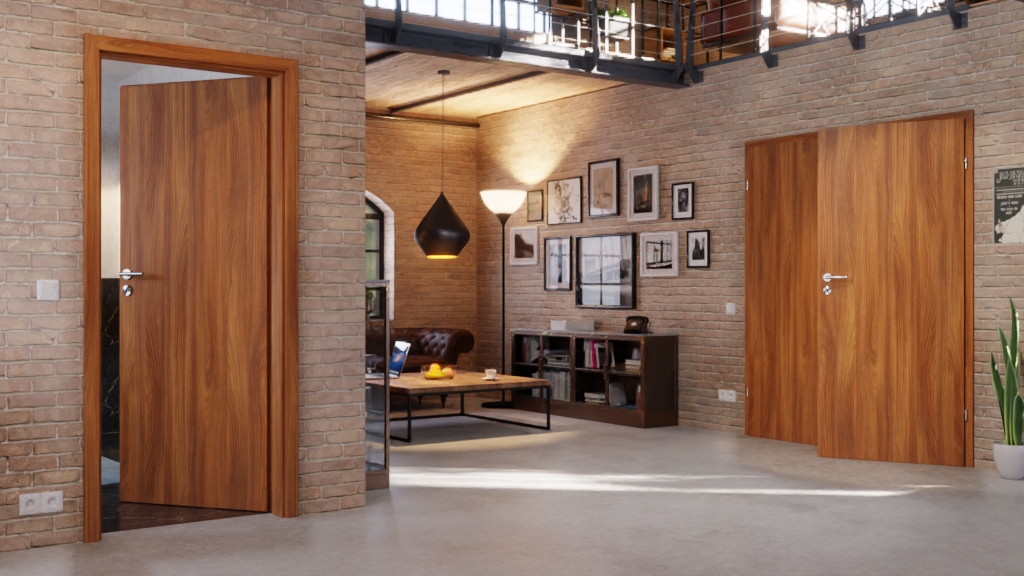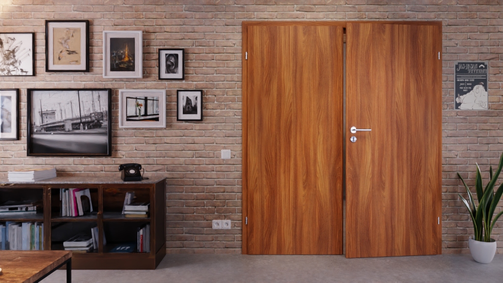 Atrakcyjne drzwi wewnętrzne podwójne z ramą skrzydła MDF i powierzchnią Primo z zaokrągloną krawędzią: