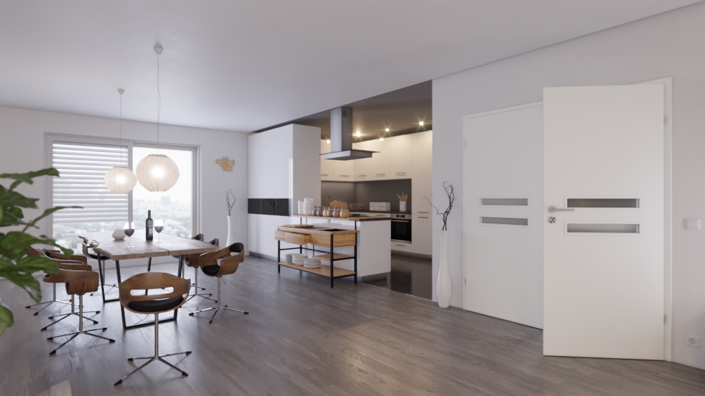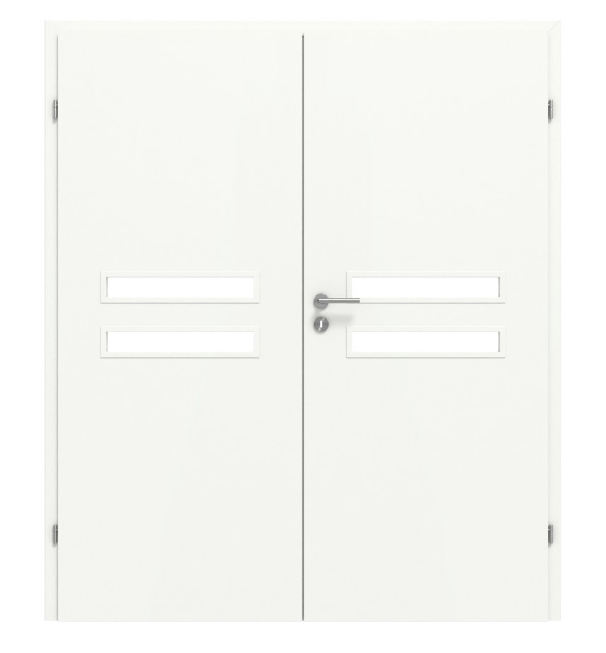 Nowoczesne drzwi podwójne z ramą skrzydła MDF i powierzchnią Primo: