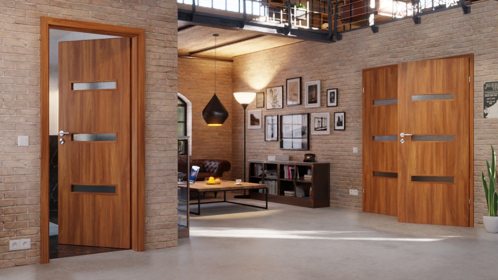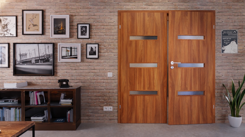 Nowoczesne drzwi podwójne z ramą skrzydła z MDF i powierzchnią Primo: