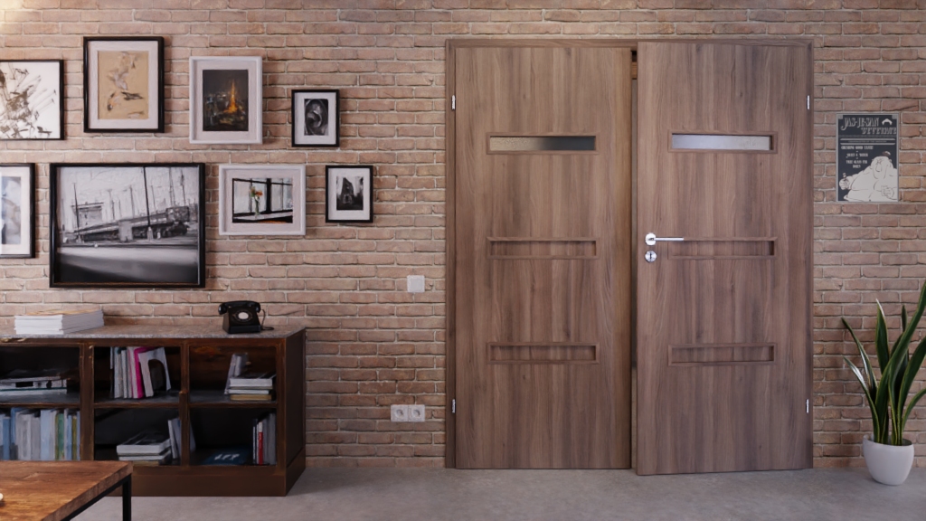 Stylowe drzwi podwójne z ramą skrzydła MDF i powierzchnią Iridium z zaokrągloną krawędzią: