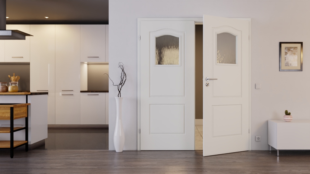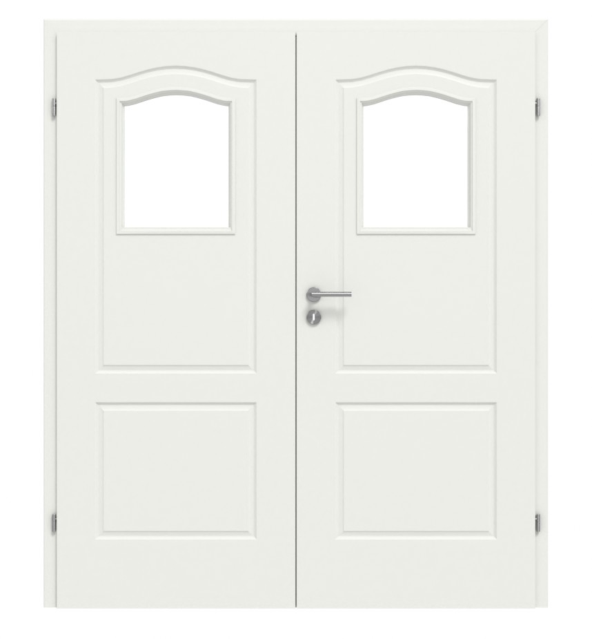 Trwałe drzwi podwójne, w komplecie cztery zawiasy i zamek wpuszczany: