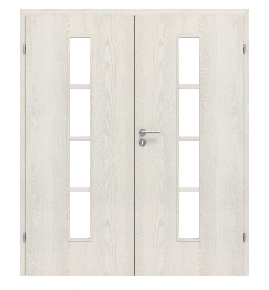 Stylowe drzwi podwójne z satynowym przeszkleniem i konstrukcją Classen-Hard z ramą z drewna miękkiego/MDF:
