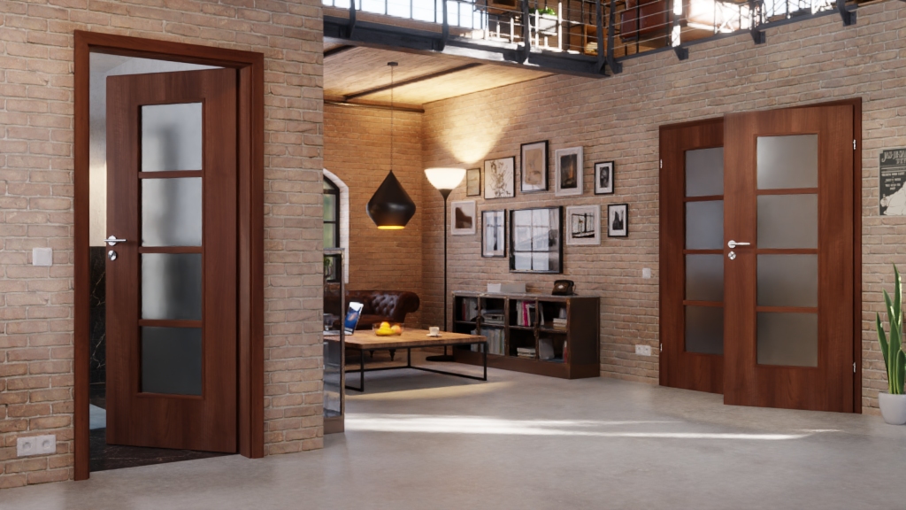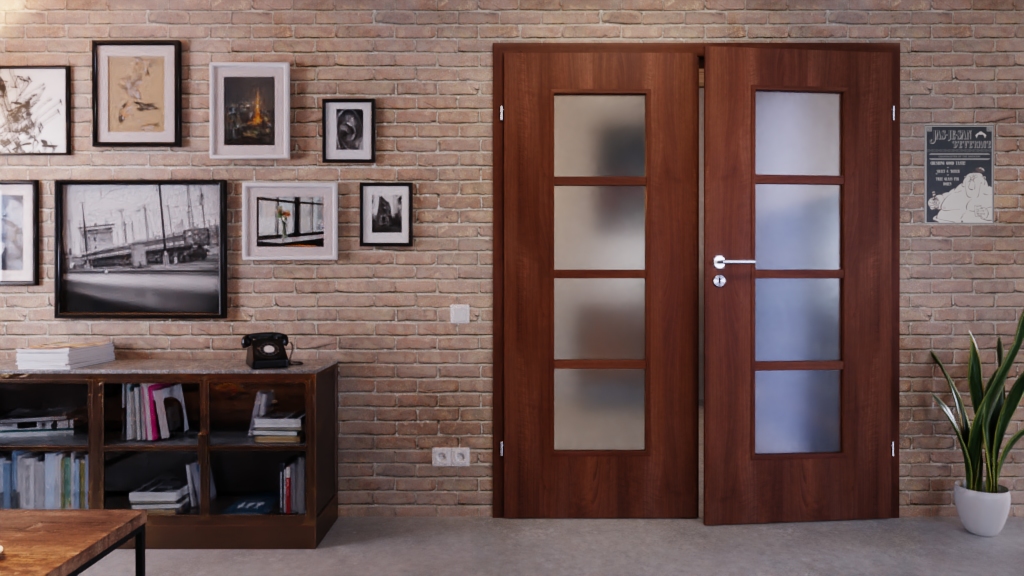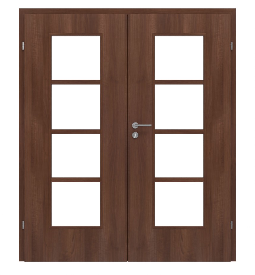 Oryginalne, dwuskrzydłowe drzwi z matowymi przeszkleniami i konstrukcją Classen-Hard z ramą z drewna miękkiego/MDF: