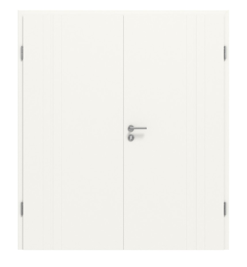 Przystępne cenowo drzwi wewnętrzne z dwoma skrzydłami: Wybierając drzwi podwójne M 3.22 w białym lakierze RAL 9016 od Classen, decydujesz się na łatwość w pielęgnacji i prostą estetykę.