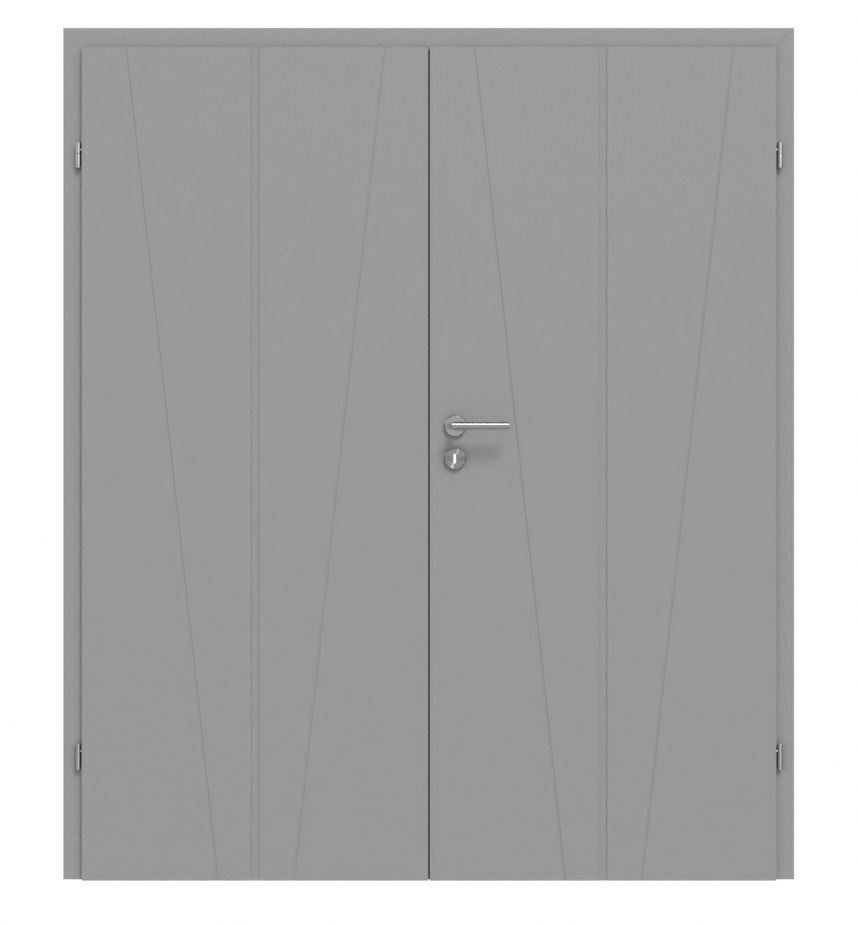 Drzwi podwójne w kolorze szarym RAL 7004 z frezowanymi liniami:
