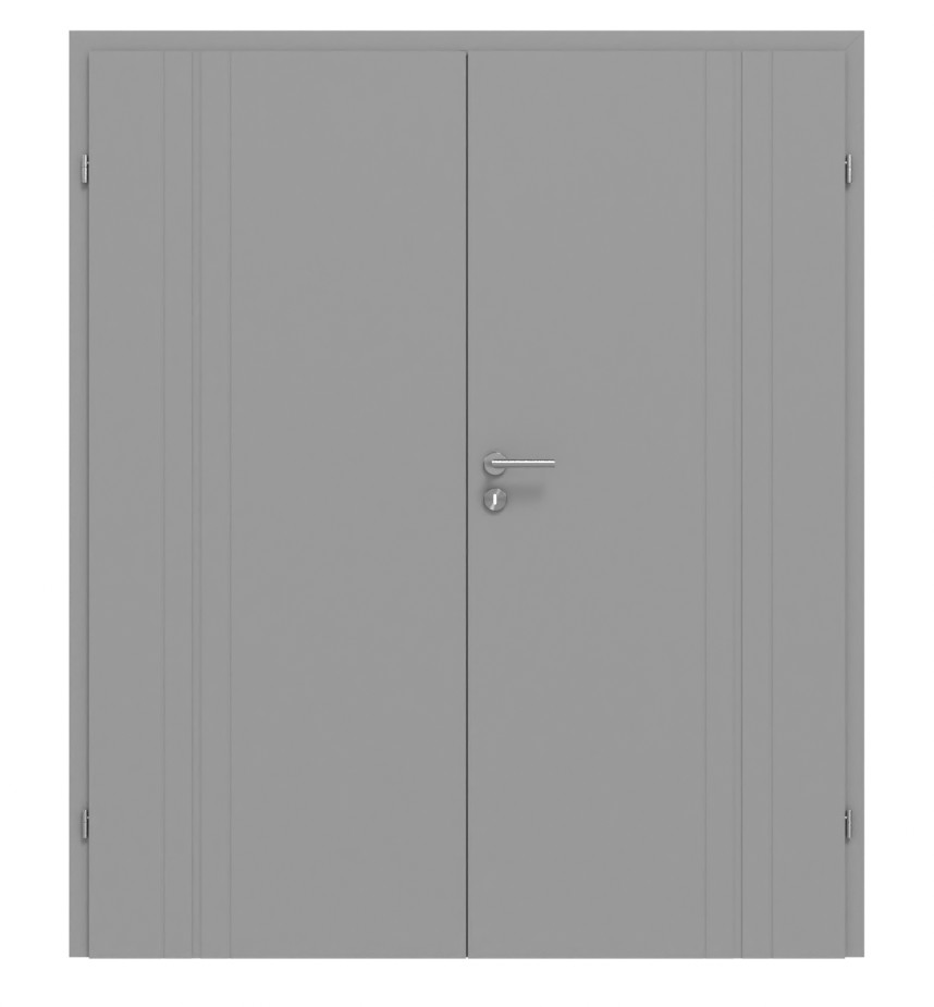 Malowane drzwi podwójne w kolorze szarym RAL 7004 z wzmocnioną ramą MDF: