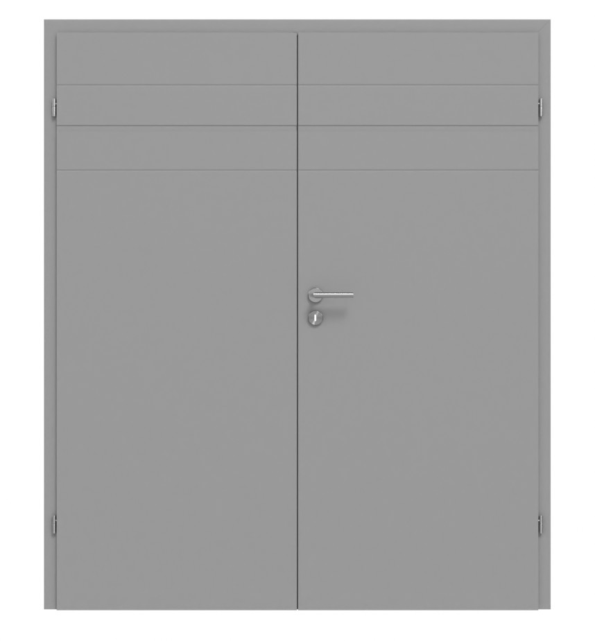 Atrakcyjne drzwi podwójne w kolorze szarym RAL 7004 z frezowanymi detalami:
