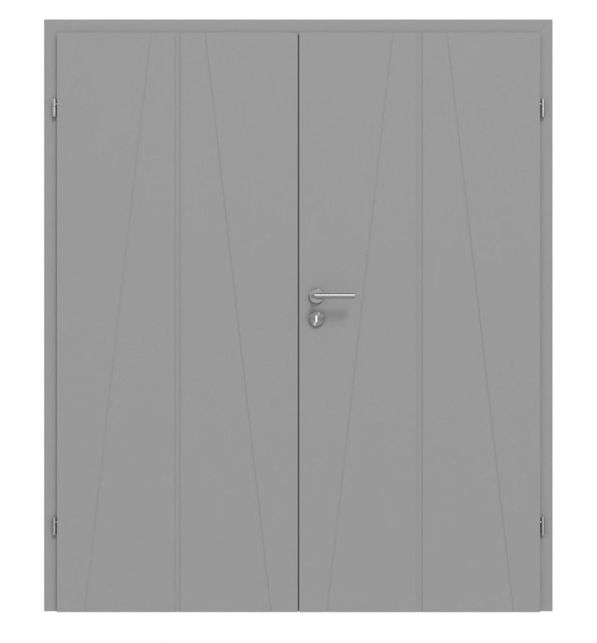 Atrakcyjne drzwi podwójne w kolorze szarym RAL 7004 z wzmocnioną ramą MDF: