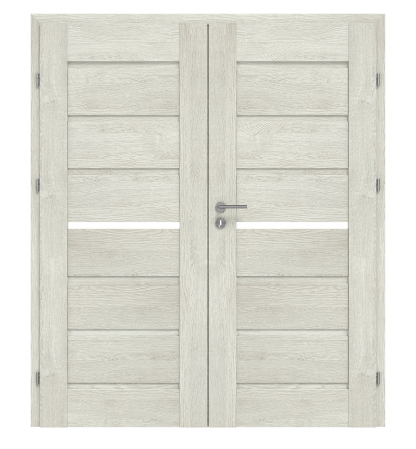 Stylowe drzwi wewnętrzne dwuskrzydłowe ze stabilną ramą MDF i powierzchnią 3D w kolorze Dąb szary: