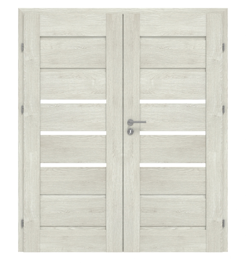Stylowe drzwi wewnętrzne podwójne z dwoma skrzydłami z ramą z płyt MDF i powierzchnią 3D Look w kolorze Dąb szary: