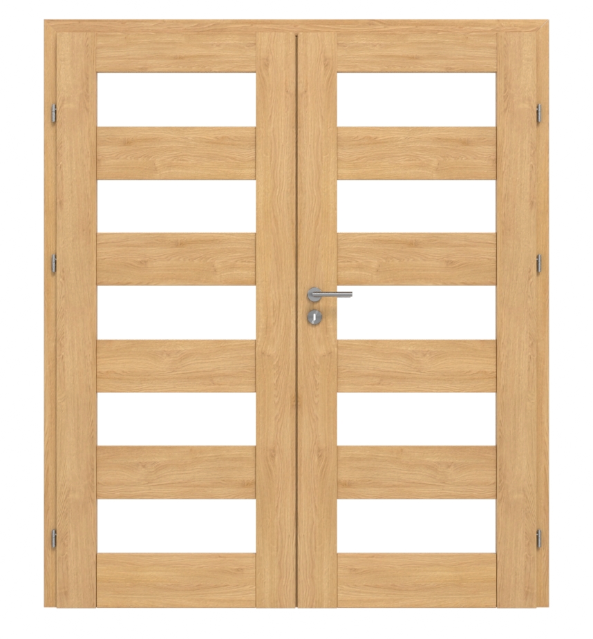 W tej Doppelflügeltür zintegrowane elementy ramowe MDF, powierzchnia 3D Look w Dąb olejowany oraz satynowane przeszklenia tworzą perfekcyjny komplet: