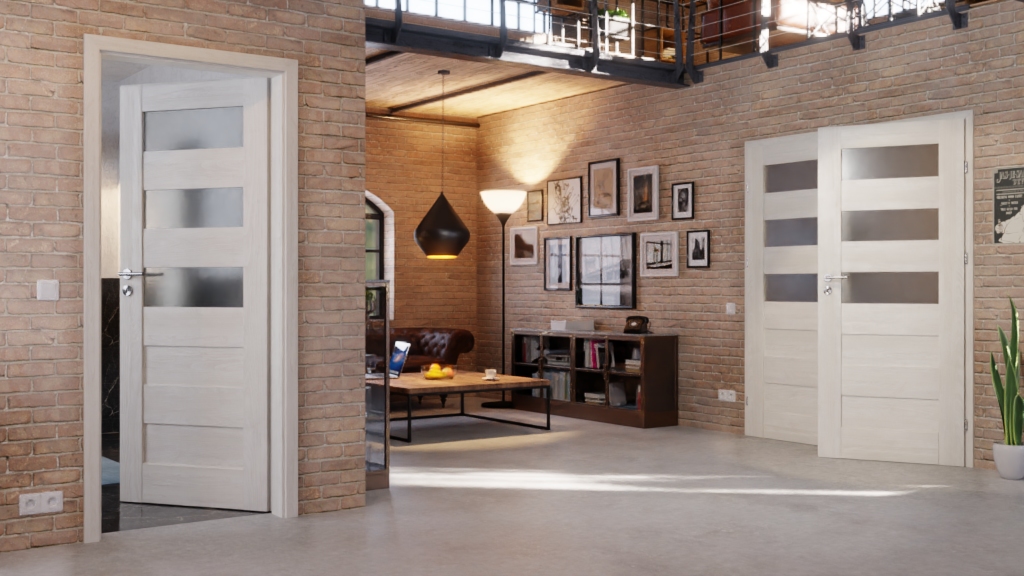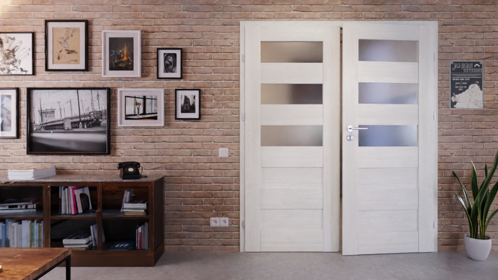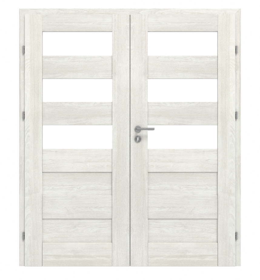 W tej Doppelflügeltür elementy ramowe z MDF, powierzchnia CPL w dekorze Jesion norweski, a także satynowane przeszklenia i panele z płyt HDF tworzą perfekcyjny komplet: