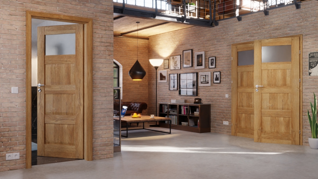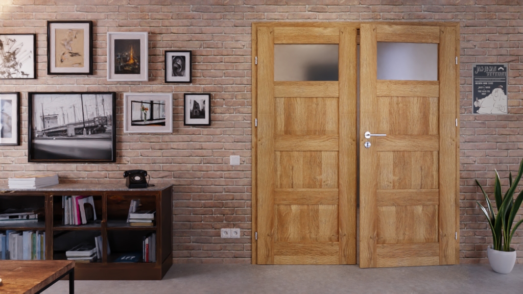 Dwuskrzydłowe drzwi ramowe Kofano o urokliwym wyglądzie drewna
