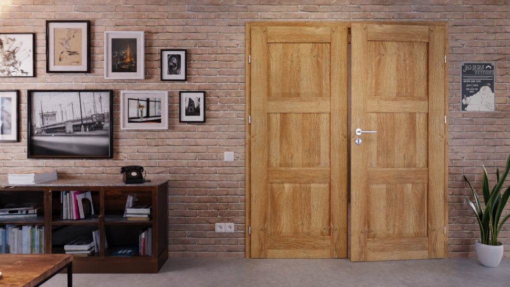 2-skrzydłowe drzwi wewnętrzne Kofano o zrównoważonym efekcie kasetowym