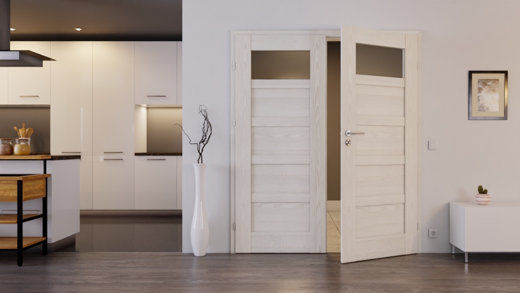 Wytrzymały model drzwi podwójnych, w komplecie z sześcioma zawiasami: