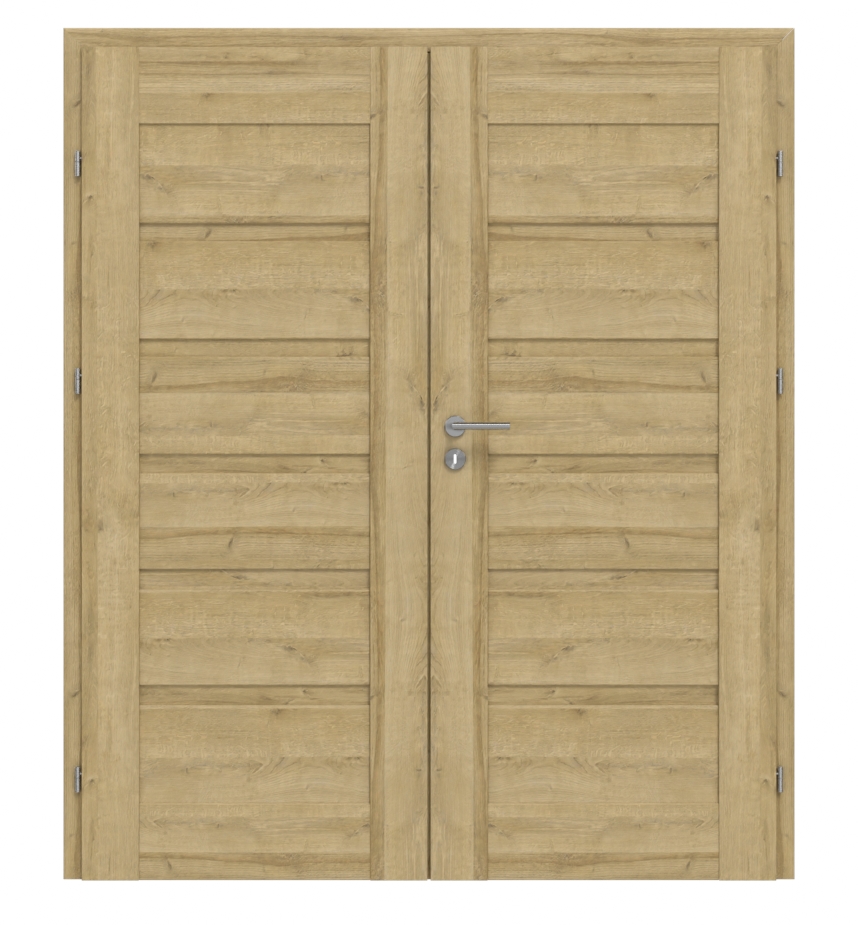 Atrakcyjne drzwi podwójne z ramą MDF i powierzchnią 3D w dekorze Dąb Riviera: