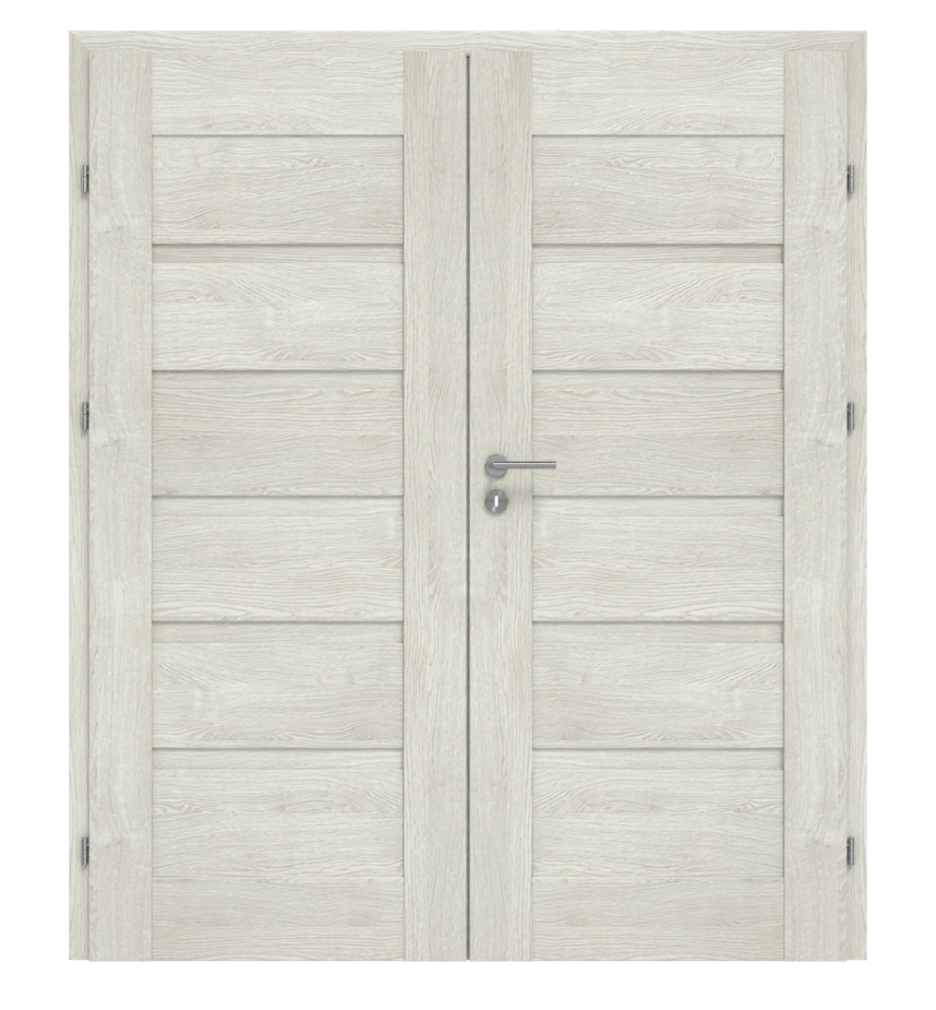 Prosta dwuskrzydłowa drzwi wewnętrzne z ramą MDF i satynowymi przeszkleniami: