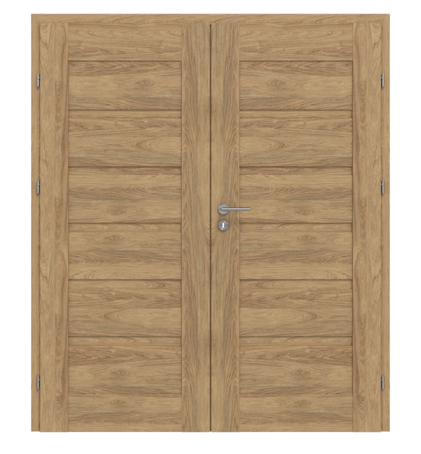Prosta dwuskrzydłowa drzwi wewnętrzne ze stabilną ramą MDF i powierzchnią 3D w dekorze Dąb Tocantis: