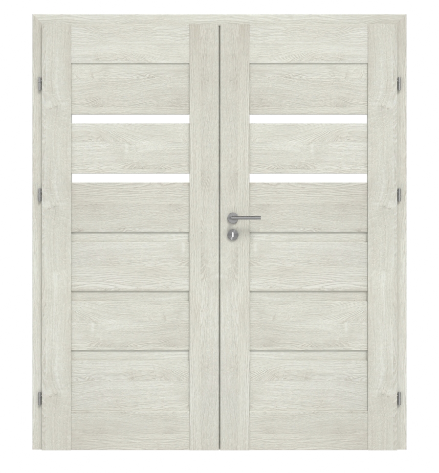 Stylowe drzwi podwójne z zintegrowanymi elementami ramy MDF i satynowymi przeszkleniami: