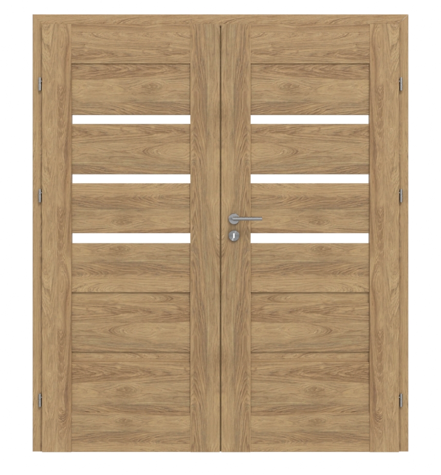 Oryginalne drzwi wewnętrzne podwójne ze stabilną ramą MDF i satynowanymi przeszkleniami: