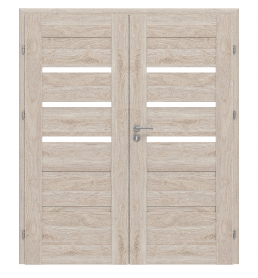 Nienachalna drzwi podwójne z elementami ramy MDF i pasami świetlnymi z satynowego szkła: