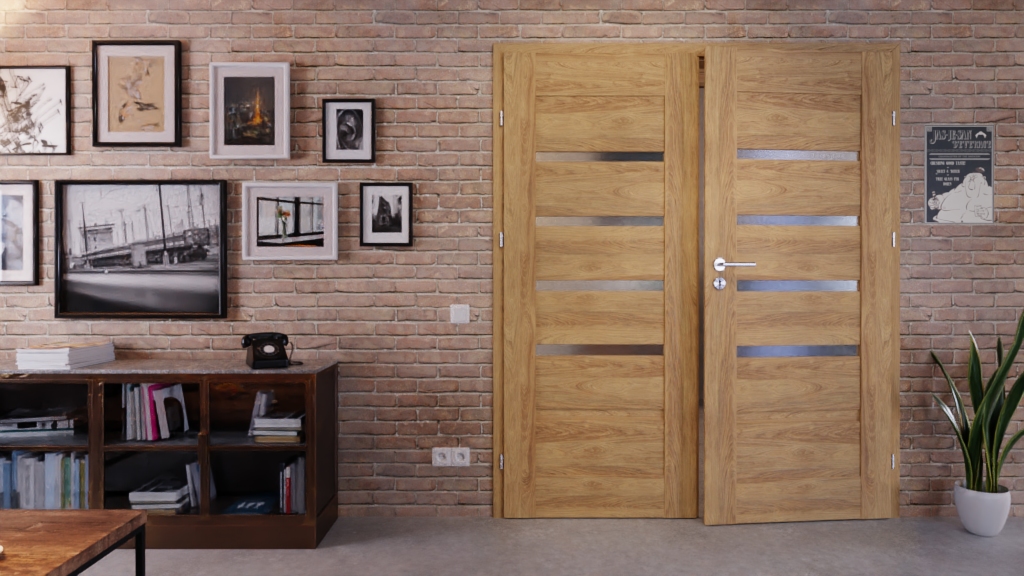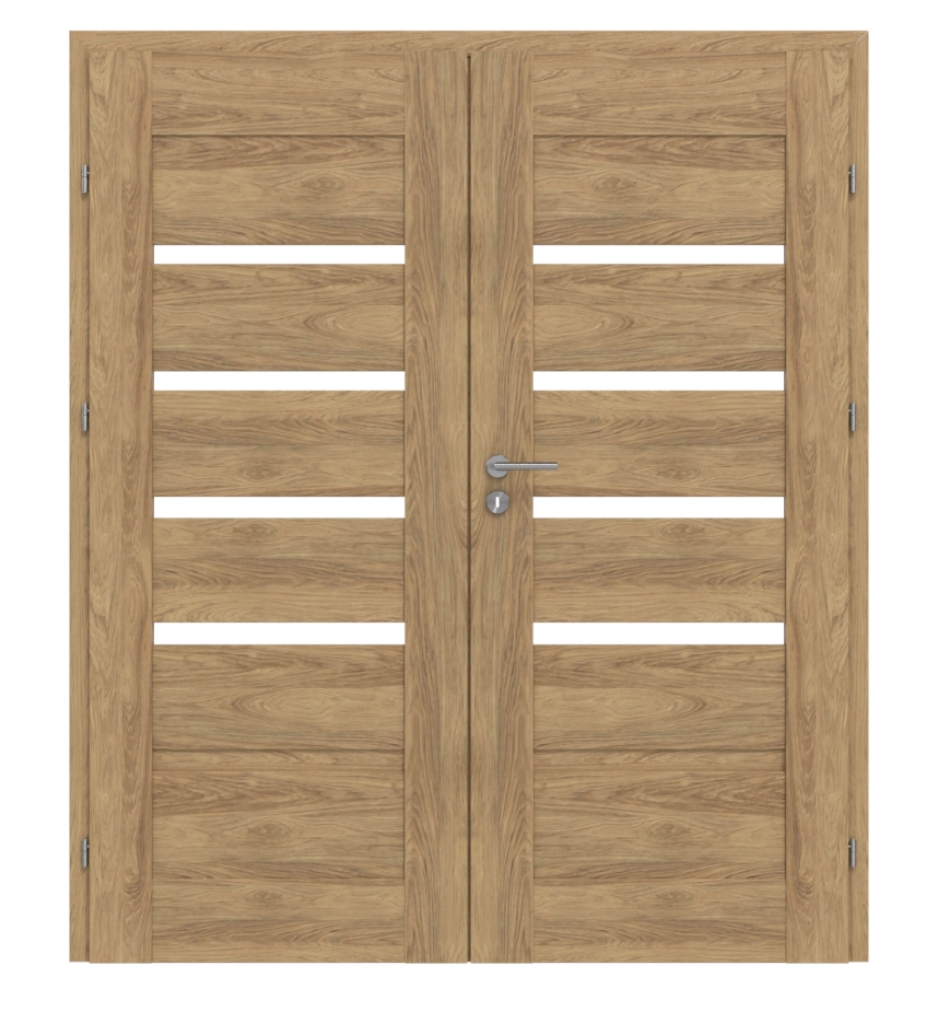 Atrakcyjne drzwi podwójne ze stabilną ramą MDF i powierzchnią 3D w dekorze Dąb Tocantis: