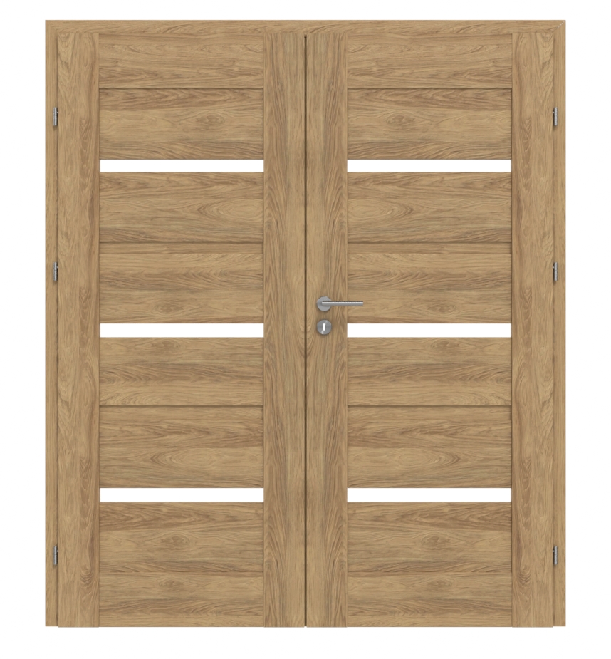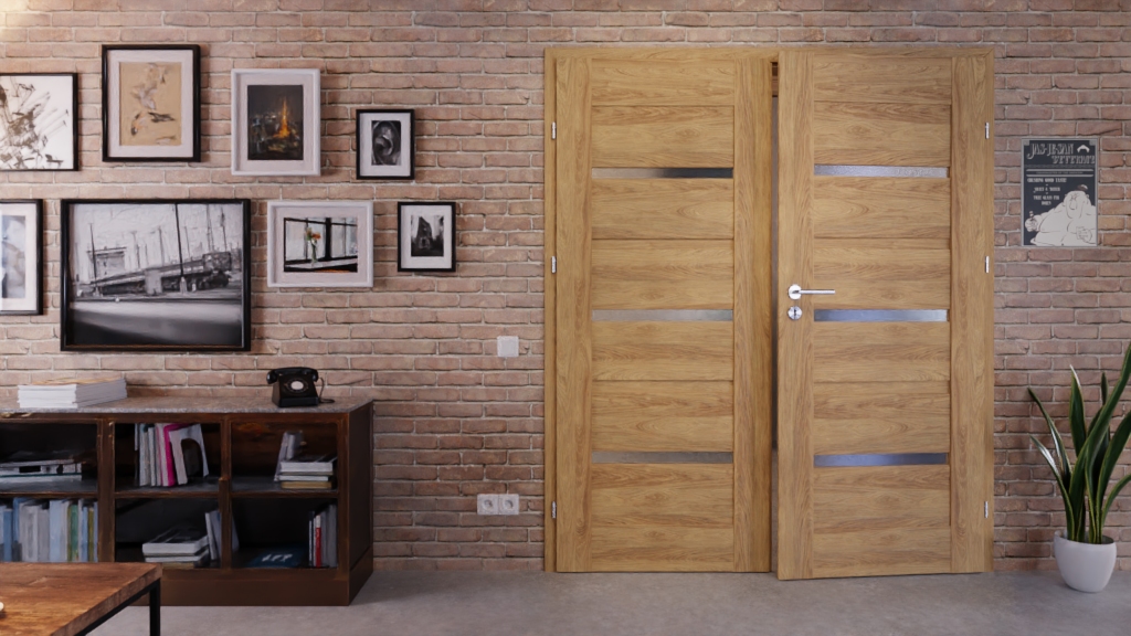 Inteligentne drzwi podwójne z ramą MDF i satynowymi przeszkleniami:
