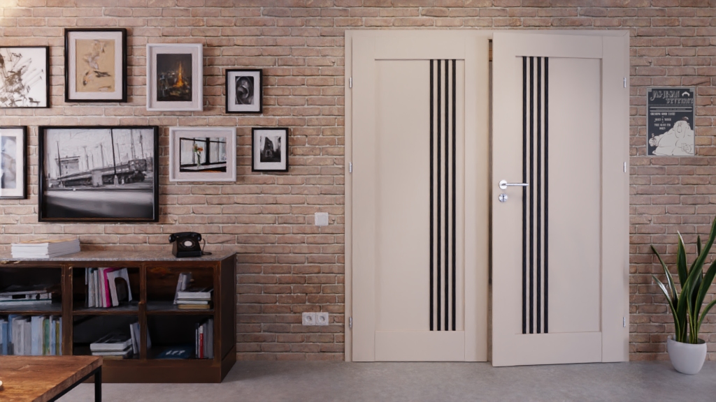 Atrakcyjne drzwi podwójne z konstrukcją ramową MDF, w komplecie z ościeżnicą: