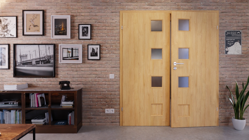 Estetyczne drzwi pokojowe wraz z ramą MDF w obu skrzydłach drzwiowych: