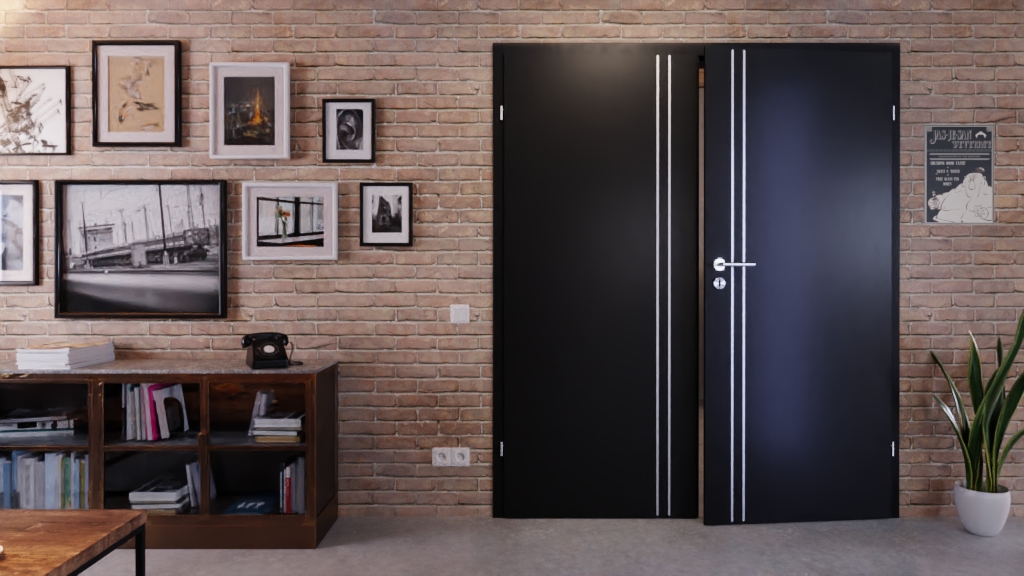 2-skrzydłowe drzwi wewnętrzne z eleganckimi listwami z aluminium
