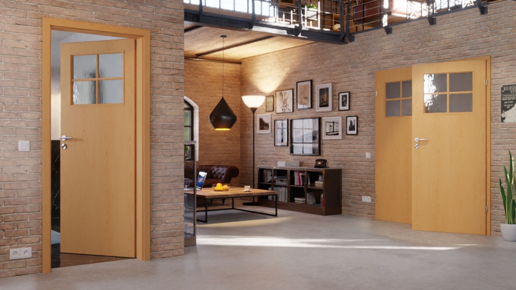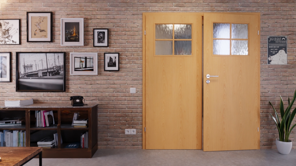 • Szyba: w standardzie ze szkłem ornamentowym, z nakładanymi listwami przyszybowymi i ramą ze szprosów