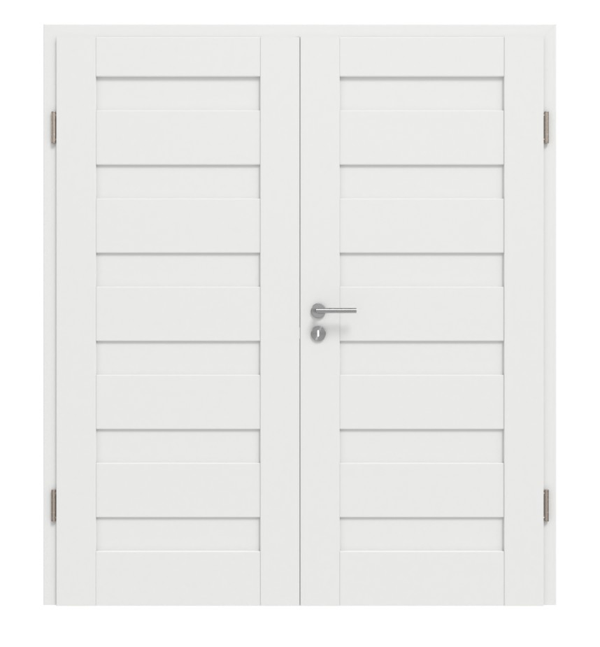 Biała powłoka CPL sprawia, że drzwi dwuskrzydłowe są modelem o wszechstronnym zastosowaniu. Konstrukcja jest rozluźniona dzięki szerokim panelom HDF, które znajdują się pomiędzy deskami.