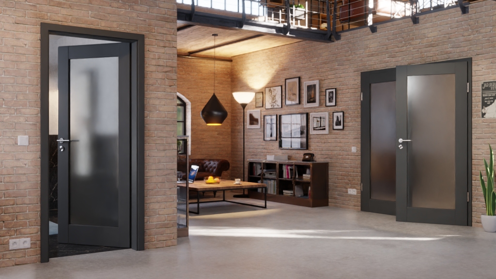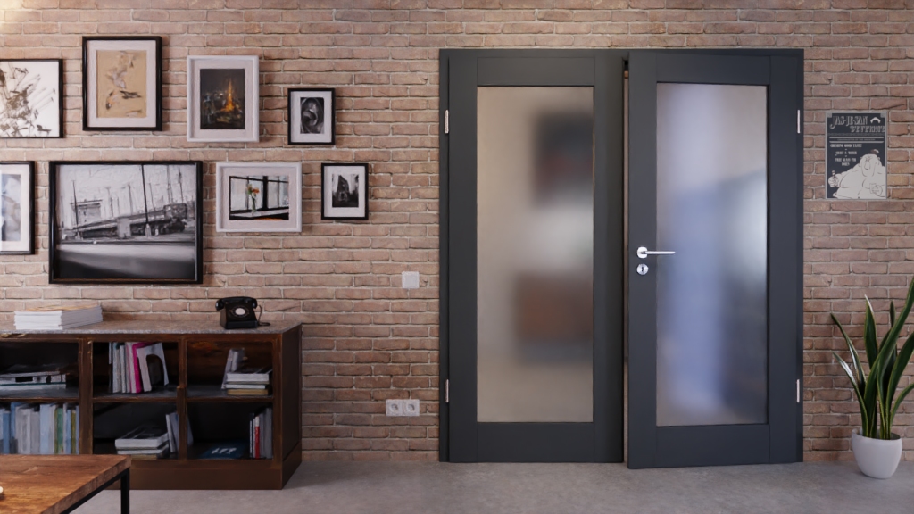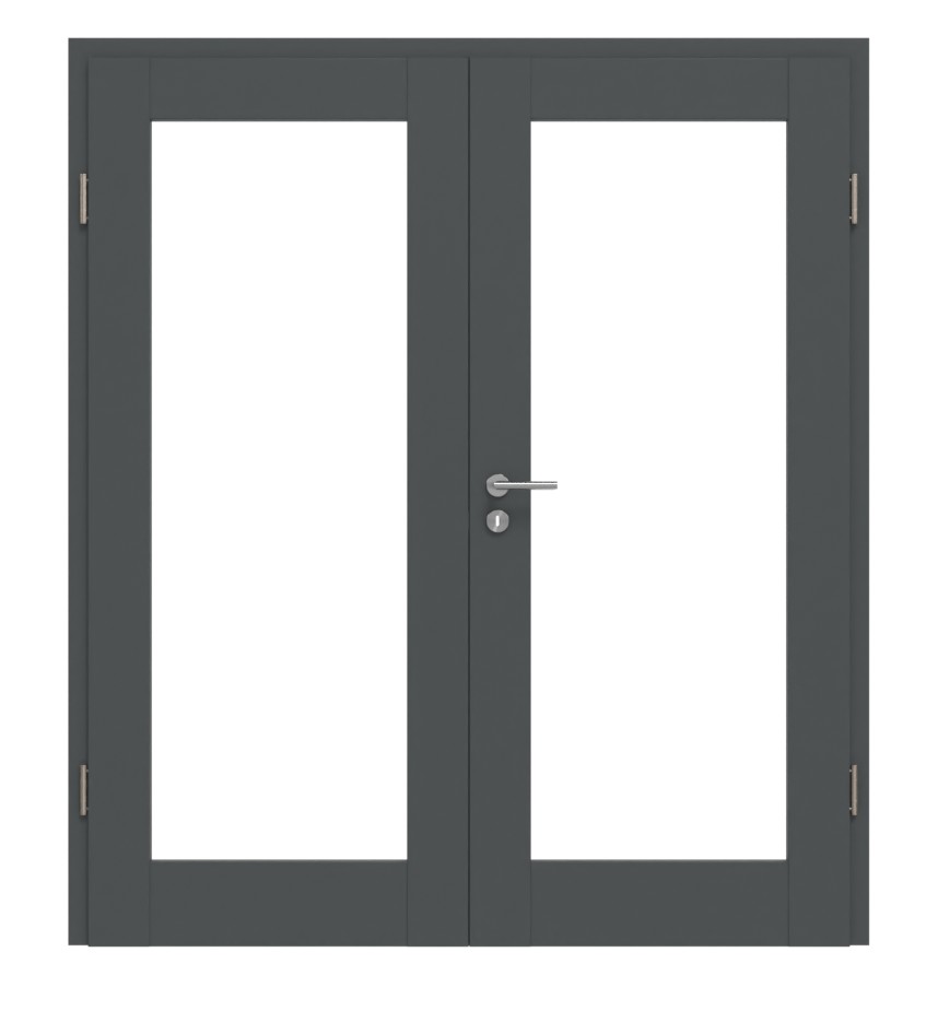 Model drzwi wewnętrznych z podwójnym skrzydłem, w tym rama MDF, 3-częściowe zawiasy i kątowe wykończenie krawędzi: