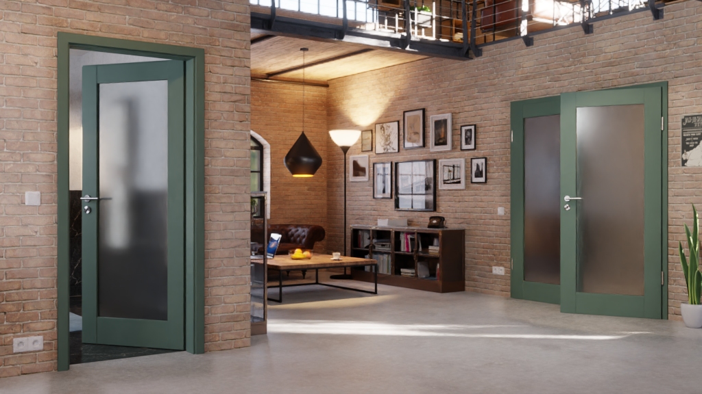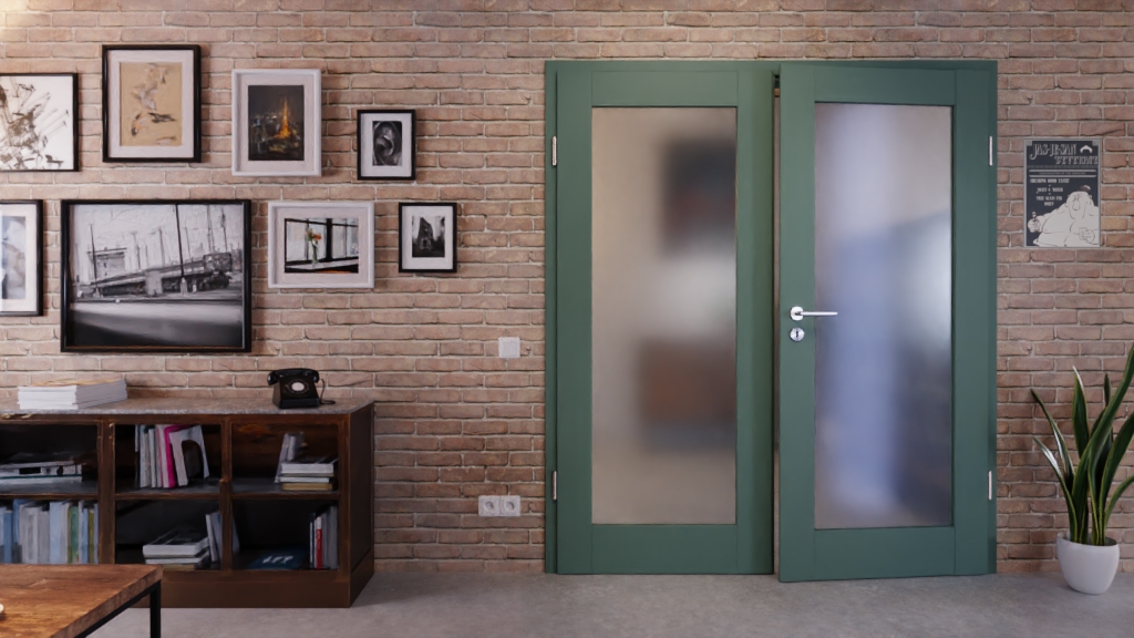 Ościeżnica do drzwi dwuskrzydłowych z wytrzymałą powierzchnią CPL w kolorze Uni Green: