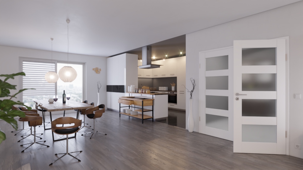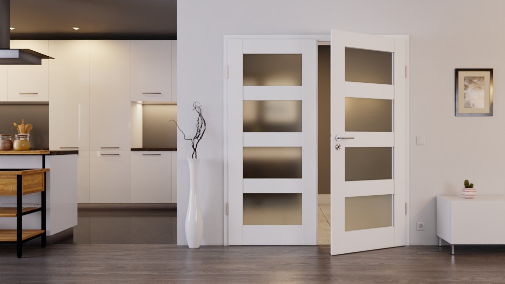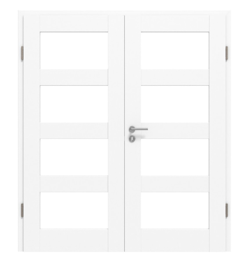 Drzwi pokojowe z dwoma skrzydłami w tym ramie MDF, 3-częściowymi zawiasami i kanciastym wykończeniem: