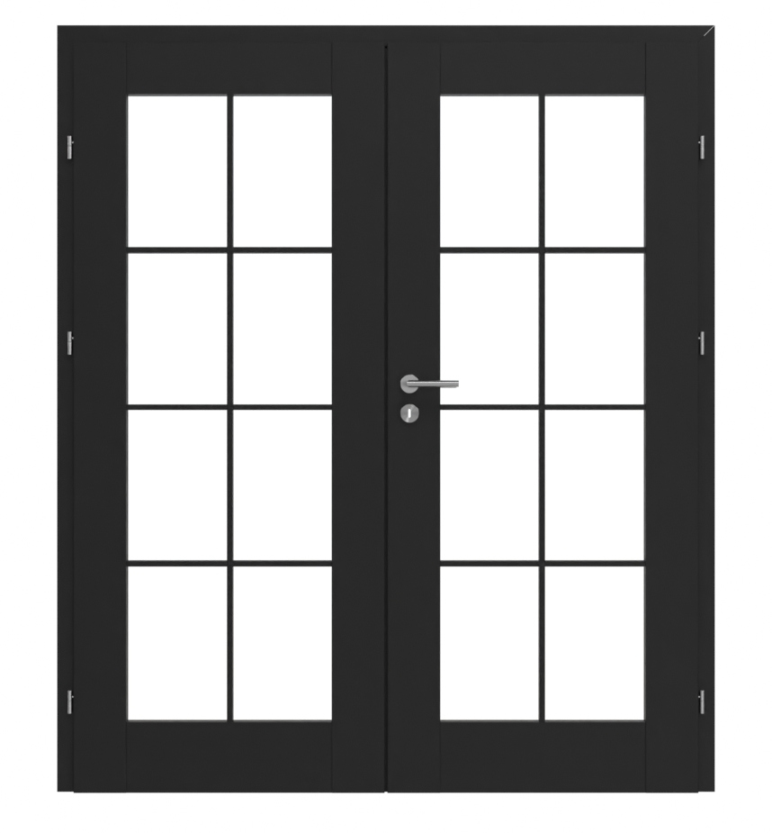 Odporne na zarysowania drzwi podwójne z przeszkleniami i 20 mm szerokimi szprosami MDF: