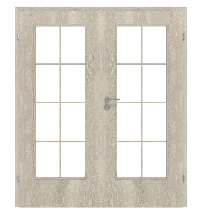 CLASSEN drzwi dwuskrzydłowe szkło M2 Kendal dąb CPL z przeszkleniem (szprosy) z ościeżnicą