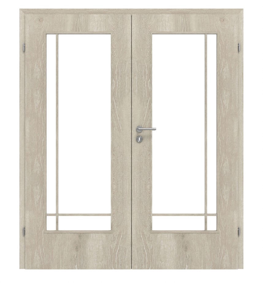 CLASSEN drzwi dwuskrzydłowe szkło M4 Kendal dąb CPL z przeszkleniem (szprosy) z ościeżnicą