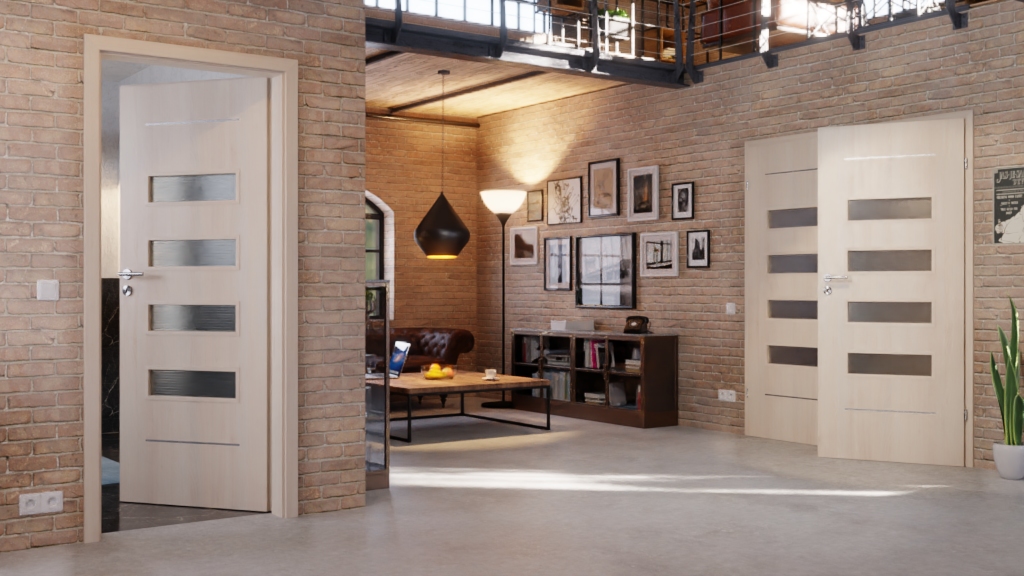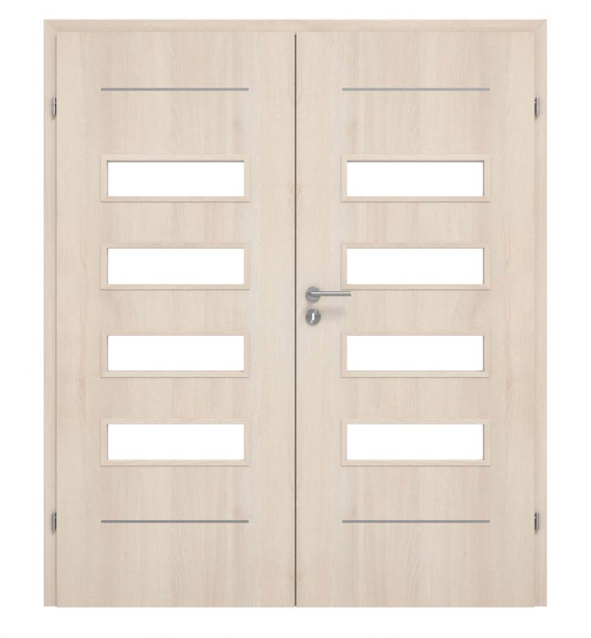W przypadku tych drzwi podwójnych konstrukcja Classen-Hard z ramą MDF, powierzchnią CPL w kolorze jasnej akacji oraz listwami i przeszkleniami tworzy idealny komplet: