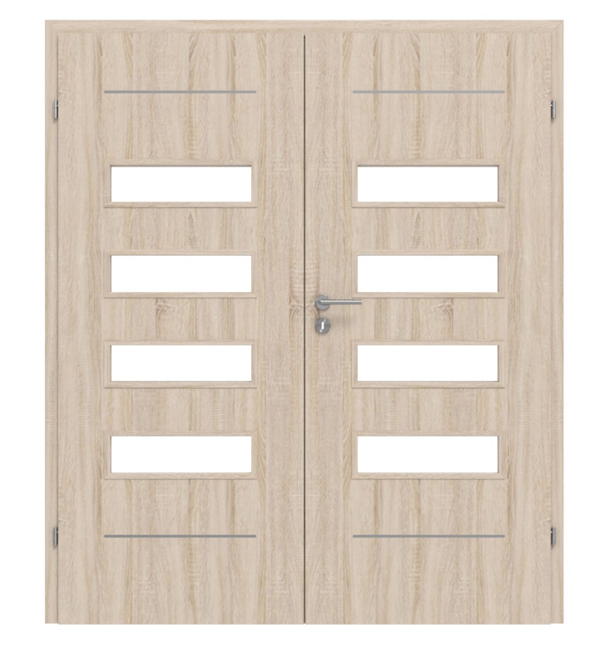 W przypadku tych drzwi podwójnych konstrukcja Classen-Hard, powierzchnia 3D Look w dekorze Dąb Sonoma oraz listwy i przeszklenia tworzą idealny komplet: