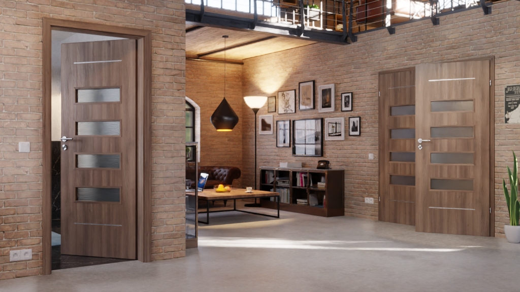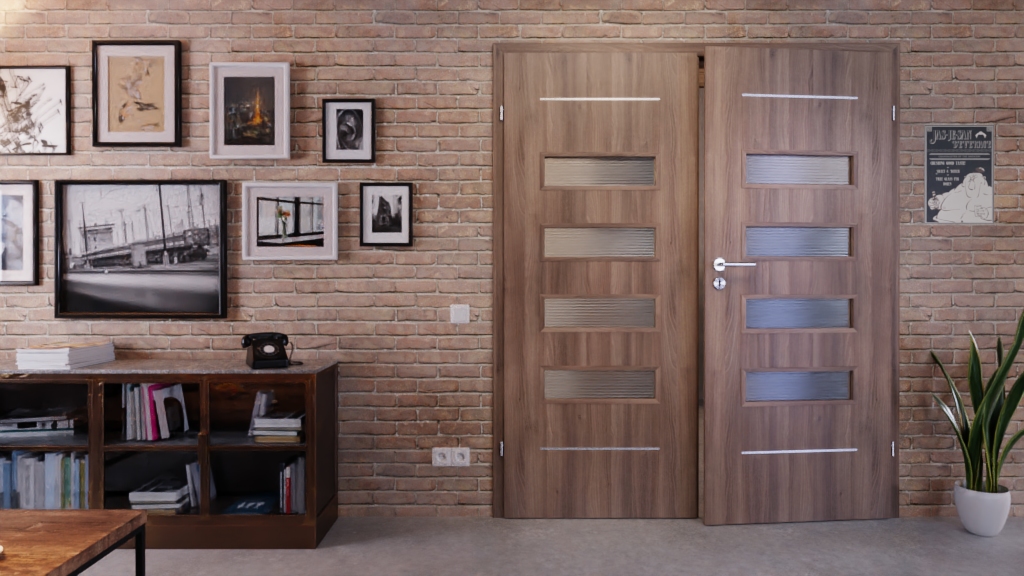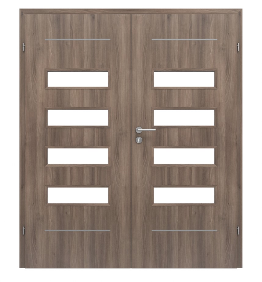 W przypadku tych drzwi podwójnych konstrukcja Classen-Hard z ramą z drewna miękkiego, powierzchnią Iridium oraz poziomymi przeszkleniami i listwami tworzy idealny komplet:
