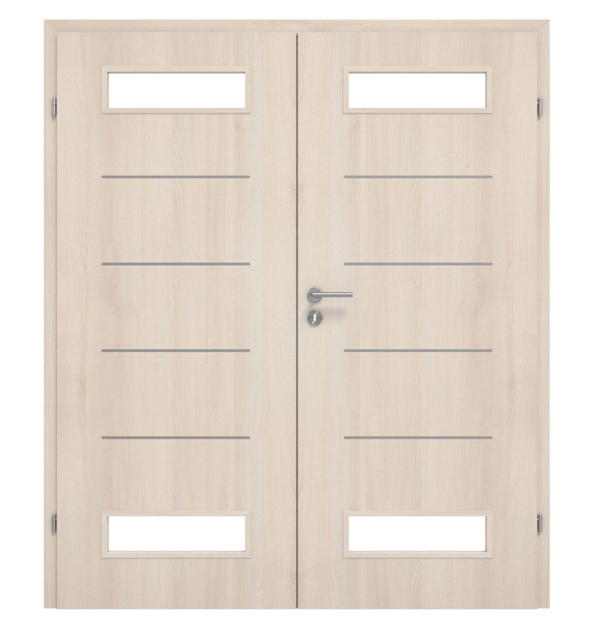 W przypadku tych drzwi wewnętrznych podwójnych konstrukcja Classen-Hard, powierzchnia CPL oraz poziome listwy i przeszklenia tworzą idealny komplet: