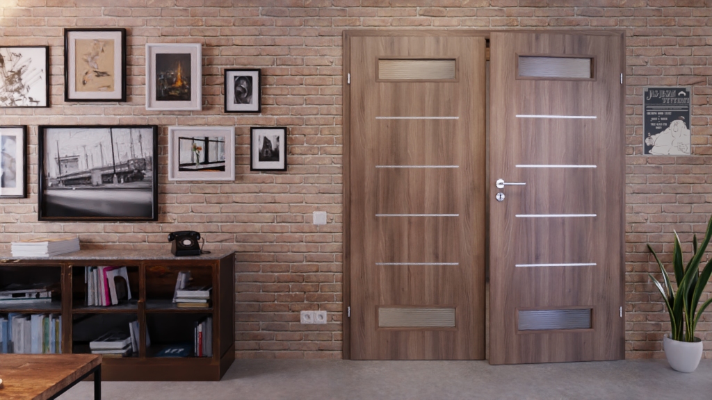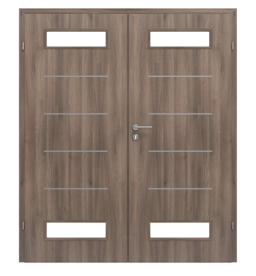 W przypadku tych drzwi podwójnych konstrukcja Classen-Hard, powierzchnia Iridium w kolorze jesion grafitowy oraz przeszklenia z ryflowanego szkła i listwy tworzą idealny komplet:
