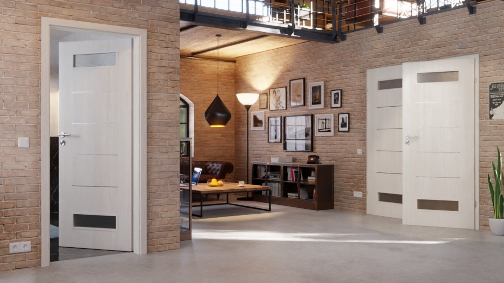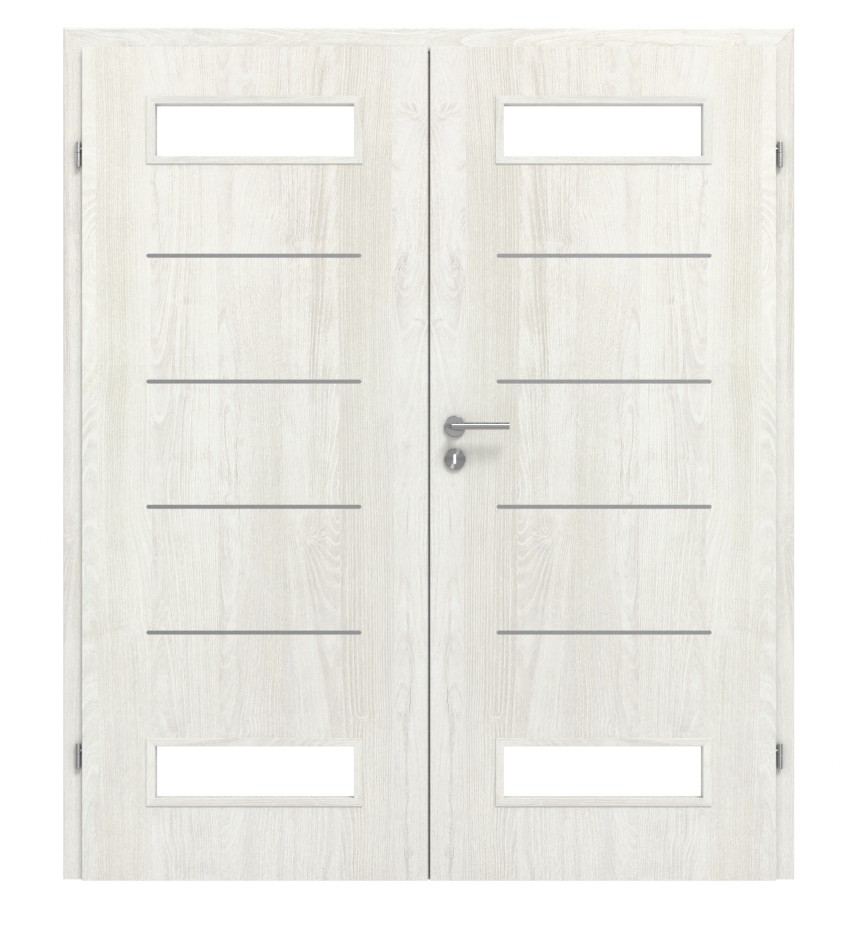 W przypadku tych drzwi wewnętrznych dwuskrzydłowych konstrukcja Classen-Hard z ramą MDF, powierzchnią CPL oraz poziomymi listwami i przeszkleniami tworzy idealny komplet: