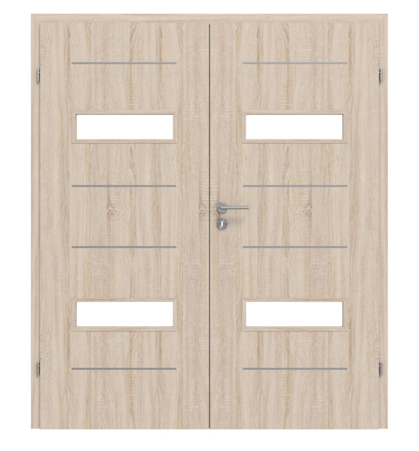 W przypadku tych drzwi wewnętrznych z podwójnym skrzydłem konstrukcja Classen-Hard, powierzchnia 3D Look oraz listwy i przeszklenia tworzą idealny komplet: