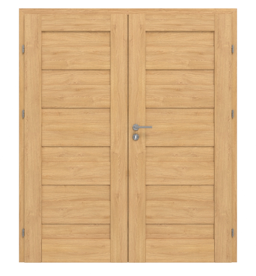 W przypadku tych drzwi wewnętrznych z podwójnym skrzydłem, wytrzymałe skrzydła drzwiowe, powierzchnia w technologii 3D Look oraz panele HDF tworzą idealny komplet: