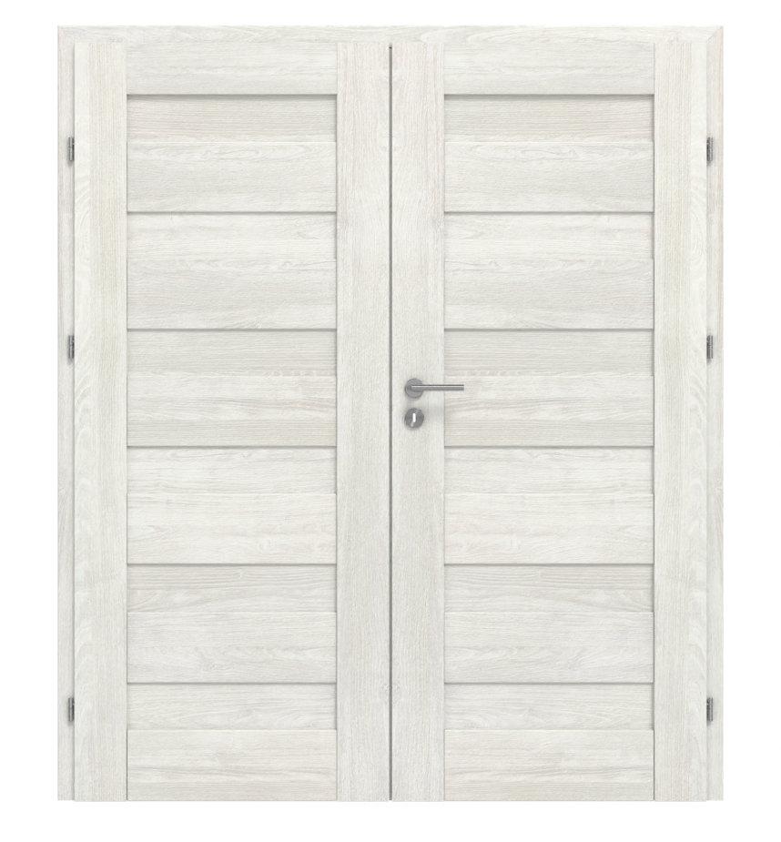W przypadku tych drzwi podwójnych ramowych zintegrowane elementy ramy MDF, powierzchnia CPL w dekorze Jesion norweski oraz panele z płyt HDF tworzą idealny, kompletny zestaw: