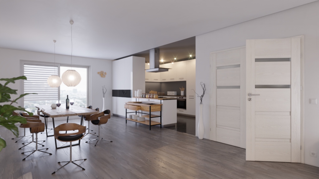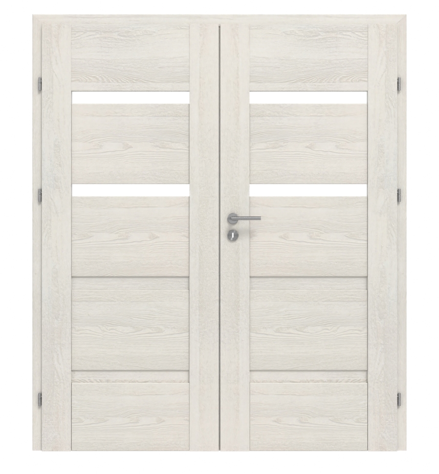 Oryginalne drzwi podwójne z ramą MDF i satynowymi przeszkleniami: