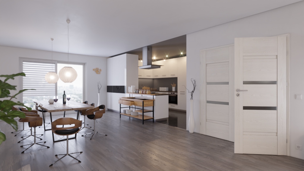 Oryginalne drzwi wewnętrzne podwójne ze skrzydłami o wysokiej odporności i przeszkleniami z matowego szkła: