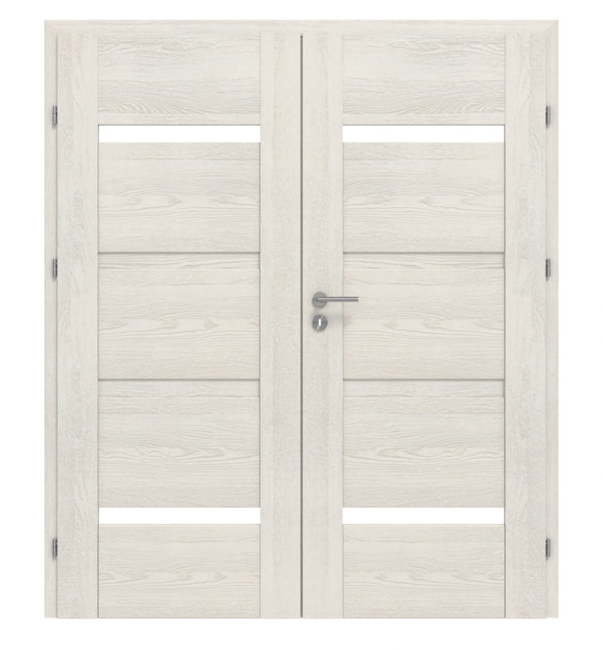 Atrakcyjne dwuskrzydłowe drzwi wewnętrzne z elementami ramy MDF i powierzchnią 3D w kolorze Jesion Biały: